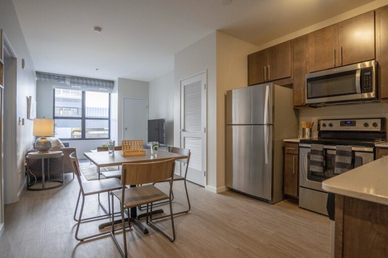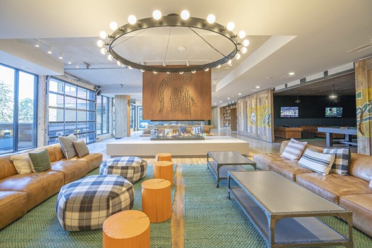Situated within walking distance of Michigan State University’s campus, this highly trafficked area is a hub of activity for students and community members. The new development includes housing for residents 55 and up, mixed market housing, and an urban Target flexible-format store, the first of its kind in Michigan. New bike lane infrastructure surrounding the site makes it a bikeable and walkable environment, with well-lit pedestrian walkways connecting the buildings. The project also included new utility infrastructure. During preconstruction, the team worked through a detailed value engineering process, reducing over $4 million in scope and helping to bring the project within the desired budget and ready to move forward. The team was also challenged by the project’s tight, urban site and focused on developing good relationships with neighboring residents and businesses as they worked to eliminate disruptions to the surrounding area. This sometimes involved limited extended hours of work, particularly during special events or final exam week for nearby MSU students.
