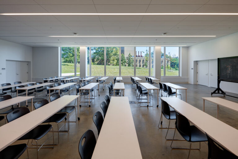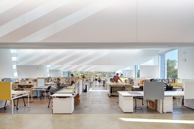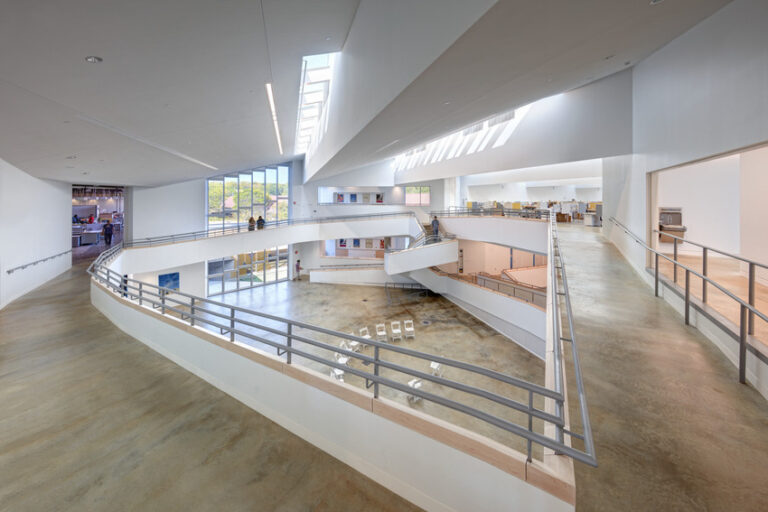 This expansive wing addition was designed to transform the relationship between students and faculty with a focus on communal and collaborative spaces. While studio spaces still account for much of the active space in the building, large gathering spaces have become the heart of the school. One of the most notable areas is the building’s large two-story commons. Surrounded by a series of spiral-like stairs and ramps that create perambulatory sequences designed to create encounters between faculty and students, the commons is designed to be a place where the school’s community can meet. It is also large enough for major events and installations, so there is room for faculty and students to display large-scale works. The project team was challenged to fit the University’s programmatic needs within a defined budget that made the project economically viable. Initial estimates at schematic design came in 16 percent over budget. A thorough value analysis process allowed the team to make minor modifications and still retain the highly regarded architectural design elements, ultimately delivering the project under budget.