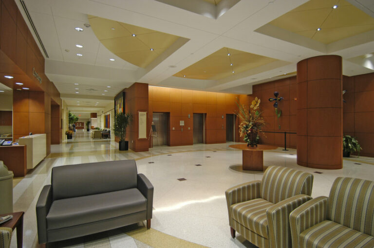 The hospital incorporates high-tech design accents inside and out to give the facility a futuristic appearance. Architectural and engineering features include a drilled pier foundation, a basement level 20' below grade, and an exterior glass curtain wall and window as well as brick and pre-cast concrete with the appearance of limestone. There is also a 12,000 SF utility plant constructed adjacent to the hospital to provide extra services, along with a sky bridge connecting the structure to the medical office tower. A two-story vertical expansion added 48 new patient rooms. The project scope also included a renovation and expansion to other key areas. Christman faced the challenge of working in this fully operational hospital while ensuring there were no disruptions to normal activities. In adding the two new floors, the sixth floor was finished first and the fifth floor second because of the support system and the shoring - which required steel beams for reinforcement. Building Information Modeling (BIM) was utilized.