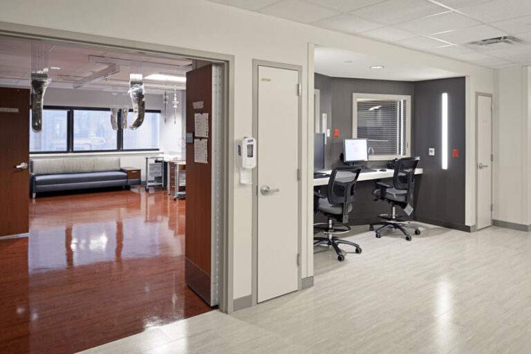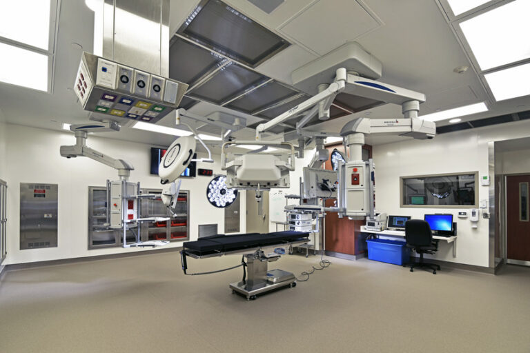 This project took place over the course of two and a half years and began with upgrades to 68 intensive care unit patient rooms and supporting nurse stations in two hospital buildings on the campus. The project scope was divided into eight phases, allowing the team to complete numerous mechanical, electrical and plumbing improvements, combine two existing elevator shafts into one mega-elevator for the ICU to transport heart transplant recipients, relocate both the dialysis unit and perioperative administration department, and construct five new cardiovascular operating rooms. Working on a fully operational hospital campus, communication between all team members was critical. While numerous areas were under construction at the same time, maintaining the project schedule ensured each phase of construction was completed on time to continue flowing smoothly. Great care was taken in critical areas to ensure noisy work activities took place at appropriate times. Extensive coordination was undertaken to maintain a safe environment for all patients, staff and visitors.