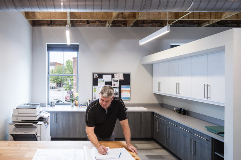 Christman Capital Development Company, in partnership with Preservation Greensboro Development Fund, Inc. and the City of Greensboro successfully transformed this historic structure into The Christman Company’s new regional office. The team focused on maintaining the building's historic fabric while creating a vibrant workplace to build upon the storied role that it has played in Greensboro history and further engage the south end of downtown. Rehabilitation of the three-story building located at an urban crossroads presented significant technical challenges to the construction team. Operating between two active railroad tracks, stabilizing the historic masonry structure, working with extremely limited space for construction materials and deliveries, and replicating the historic exterior cornice were just some of the challenges the team overcame. A construction approach of “building a ship in a bottle” was used to erect a new support structure inside the historic brick walls.