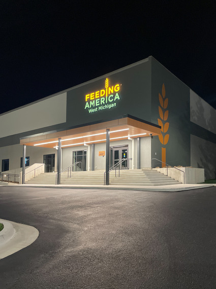 Feeding America West Michigan receives food donations from the food industry and stores, inspects, repackages and transports this food to approximately 800 non-profit organizations across 40 counties in Michigan with a fleet of 35 trucks. This expanded warehouse significantly enhances the organization's capacity to serve those facing food insecurity. The new space now includes an office suite, food reclamation space, multi-purpose room for volunteers, warehouse space, cooler/freezer storage and demonstration kitchen for educating the community on maximizing food resources.