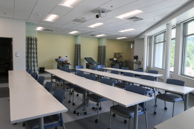 This modern new building was built to expand and upgrade the existing nursing program. The new facility accommodates programs including nursing, occupational therapy, emergency medical science, medical sonography, surgical technology, opticianry, radiology, and speech-language pathology. The three-story building provides technology-rich simulation training suites, teaching labs, classrooms, offices and support spaces. This new Center includes several community clinics such as physical therapy, occupational therapy, and sonography on the first floor. Unique to the clinical expansion experience is the addition of a hand therapy lab and pediatric therapy gym. The Emergency Medical Science program – with a full-size simulation ambulance – is also located on the first floor. The mechanical systems are located in an adjacent building and the project team performed upgrades for the current system to service both buildings.