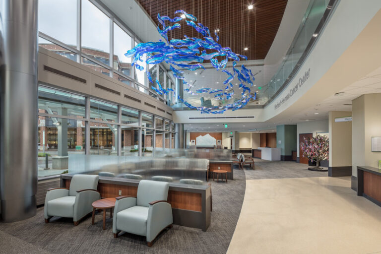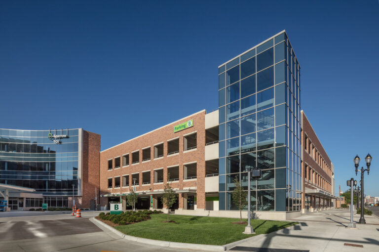 This new facility allows Sparrow Health to fulfill its commitment to offering timely and convenient access to radiation, medical and surgical oncologists and a full range of clinical and family support services. Designed with the future in mind, this flexible space will be able to easily adapt to next generation technologies as they emerge. The Plaza Building was constructed adjacent to an existing professional building. The two buildings connect via an enclosed, third-floor walkway which also connects to the parking structure. The parking structure provides increased accessibility for visitors and reserved parking for Cancer Center patients. The building features a central green space which has become the main organizing element for the new and existing professional buildings. The environmentally friendly design offers visitors and patients a view of the healing garden through the south windows, and a central courtyard area on the north side of the building provides patients, visitors and caregivers with a place to rest and refresh.