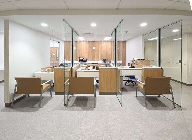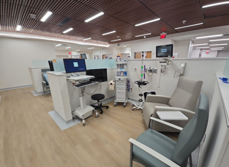 The renovation of the 1st and 2nd floors of the Lemmen-Holton Cancer Pavilion expanded essential cancer services while modernizing the spaces to better serve patients and caregivers across West Michigan. Refreshed waiting areas on the first floor create a more welcoming and calming arrival experience, while renovated exam rooms support efficient and patient focused care, upgraded staff workspaces improve collaboration and workflow and enhanced support areas better accommodate daily clinical operations. On the second floor, the renovation included a new infusion treatment area with 18 infusion chairs, ten private treatment rooms and eight modern infusion bays. Enhanced clinic space added 14 exam rooms, a dedicated treatment room for in‑clinic bone marrow biopsies and additional space to support more providers. The state‑of‑the‑art clinical environment was thoughtfully designed to support healing, comfort and dignity while uplifting both patients and caregivers. All construction was carefully phased to minimize disruption to daily operations, allowing uninterrupted patient care throughout the renovation.