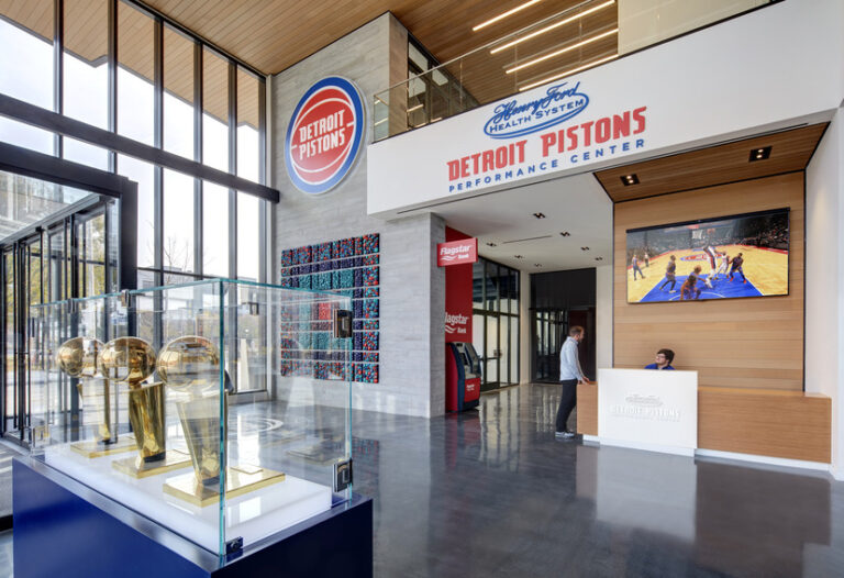 This collaborative project involved construction of the foremost, state-of-the-art performance training and athletic medicine center in the country. The facility is comprised of three structures that give the impression of one contiguous development. The first facility constructed was a new team practice facility and corporate headquarters for the Detroit Pistons. The building accommodates all of the practice and training needs for players and staff, office space for operations and coaching, and administrative offices for approximately 150 staff and executives. The second structure constructed was the Henry Ford Health Center for Athletic Medicine. The three-story building is attached to the Pistons Performance Center via a second-story walkway and specializes in athletic and orthopedic medicine, offering cutting-edge diagnostic, physical therapy and performance training technologies to the Pistons, local athletes and the general public. The third and final installment of the development was the parking deck. Situated between the two other structures, this six-story deck accommodates 380 parking spaces.