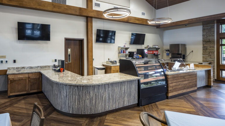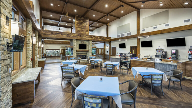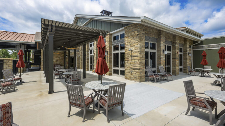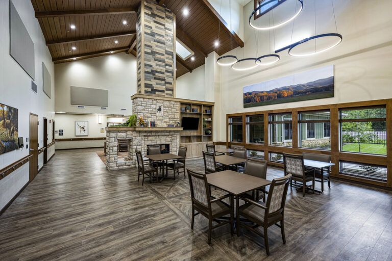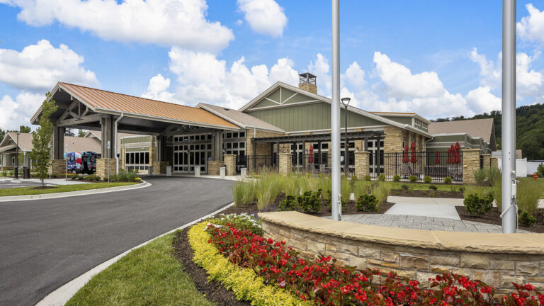 This home provides resident-centered housing and individualized care for veterans in the surrounding area. This new facility reflects a significant cultural transformation in the approach to the environment of care in community living centers, with a focus on the individual as a resident, rather than as a patient, and the home as a place for meaningful living in addition receiving nursing care. The project included construction of a single story, 108-bed intermediate and skilled care nursing facility and related site improvements. The site is home to a neighborhood of six residential houses each with 18 private bedrooms and living, dining, and kitchen areas. The houses are interconnected by interior shared spaces and common areas. The buildings share a community center, therapeutic services, other resident support spaces, as well as access to a series of outdoor garden and courtyard amenities.