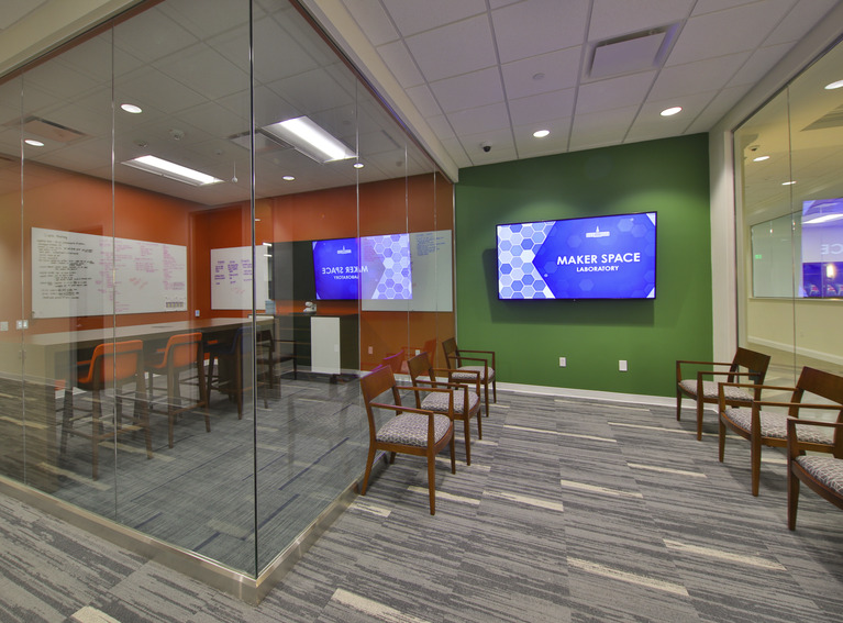 The impressive academic building features a three-story, 6,000-SF planetarium and lecture space that boasts 125 seats and a 50-foot dome with 4K projection screen and state-of-the-art surround sound system. The planetarium facility teaches astronomy, earth science, anatomy and a variety of STEM lessons for HPU students, as well as elementary, middle and high school-age groups in the community.